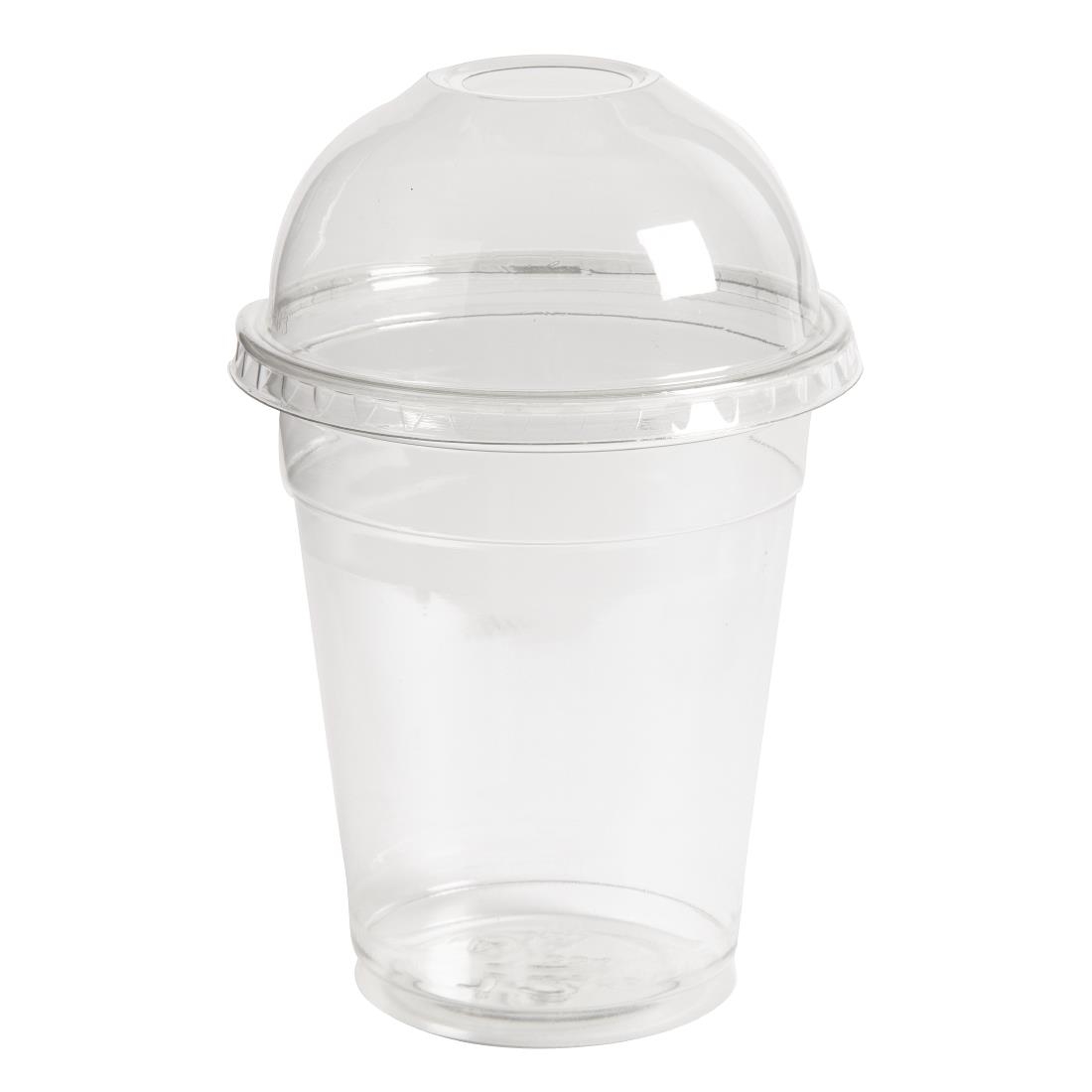These domed lids are designed to fit 398ml PET juice cups (CW926) and have a generously sized centre hole for a straw or spoon straw such as Fiesta’s clear design (CE239). Use these domed lids to protect customers from spillages when serving iced coffees, juices and smoothies. Cups sold separately (CW926).