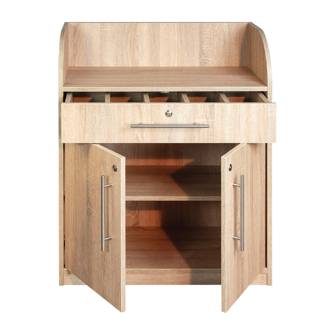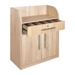 Functional hospitality furniture item designed to complement your dining area. Our elegant, practical yet durable dumbwaiter with wipe-clean melamine surfaces and impact resistant edging are ideal for front of house storage of cutlery and crockery in restaurants, cafes and pubs.With a secure cupboard door linen, crockery and condiments can be hidden out of sight of customers, and with the handy shelves and a convenient compartmentalised cutlery drawer, it is perfect for storage of crockery, cutlery and other table-top items. Keep your front of house looking clean and tidy with a dumbwaiter.