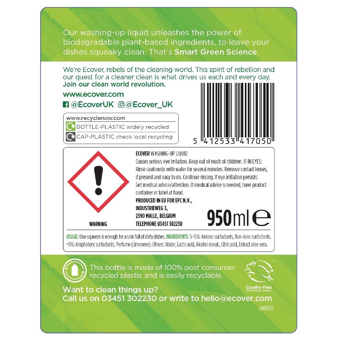 Utilising the natural scents of lemon and Aloe Vera, this washing up liquid combines a pleasant aroma with excellent cleaning power. The Ecover lemon and Aloe Vera washing liquid powers through dirt and grime to deliver sparklingly clean crockery, glassware and cooking utensils every time; helping to reduce replacement costs.The environmentally friendly washing up liquid contains plant and mineral-based ingredients and is contained within a recycled bottle, helping you to get professionally clean results without the fear of harming the environment.