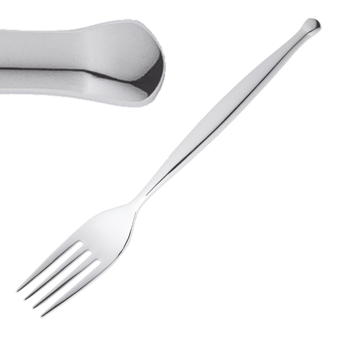 Slightly smaller than the table fork, this dessert fork is ideal for serving with cake or afternoon tea. Crafted from solid stainless steel, the Elia Jester dessert fork features a beautiful handle shape that fits comfortably in the palm of the hand. Elia pride themselves on paying attention to the smallest details in the shape and finish of their cutlery, resulting in superbly balanced cutlery that compliments the dinner table and is a pleasure to use.Need advice on choosing the right size? See the size guide below for more information.