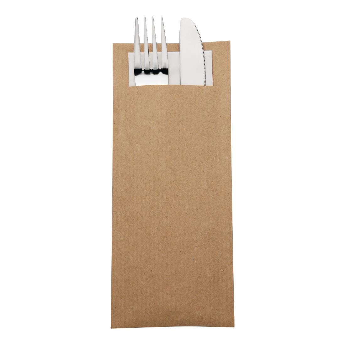 Looking for stylish yet practical additions to your table services? Then these cutlery pouch napkins from Europochette are perfect for you. Supplied pre-folded, these napkins can be used from straight out of the packaging which makes them ideal for place settings in restaurants with high turnover – staff can clean and relay tables as quickly and efficiently as possible.Boasting a brown colourway that is complemented by a white napkin, these table setting essentials add a unique and sophisticated touch that is sure to spruce-up any style-wary dining rooms.Not only do these pouches excel in style and practicality, but also help to maintain a high level of hygiene within your dining room. The pouches aid in preventing cutlery from touching your table when set, which aids in minimising bacteria transfer.