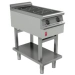 Part of the Falcon Dominator Plus range, the E3902i induction boiling top has been specifically designed to provide powerful, instant heat whilst still being incredibly efficient and reliable. With two separate 5kW heat zones over its 6mm toughened glass hob, the boiling top is very easy to clean and can simply be wiped down at the end of service. The hob automatically cuts power when pans are removed to reduce operating costs and to help contribute to a cooler kitchen. Supplied with sturdy fixed stand.