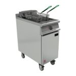 Falcon Dominator Plus Twin Basket Fryer with Filtration & Fryer Angel on Castors