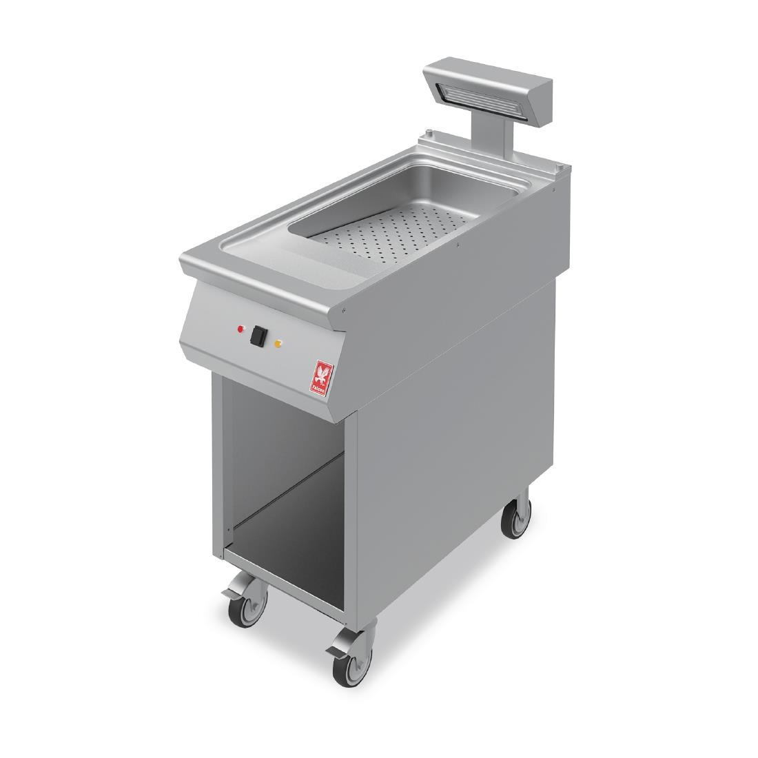 Perfect for keeping pre-cooked fried foods such as chips, French fries or onion rings deliciously crispy and at a safe serving temperature, the Falcon F900 E9646 Electric Chip Scuttle is the ideal solution for schools, takeaways and more. Heat is produced both above and below the pan, ensuring food is kept appealing without leaving parts of the pan cool. High grade stainless steel helps to make the chip dump incredibly strong and the addition of sturdy castors help make the cleaning process even easier.All Falcon F900 freestanding appliances benefit from advanced DLS (Dynamic Link System) technology, allowing the units to be seamlessly linked with other F900 products, leaving no gaps between stations – the perfect opportunity to create the ideal cook line for your kitchen.