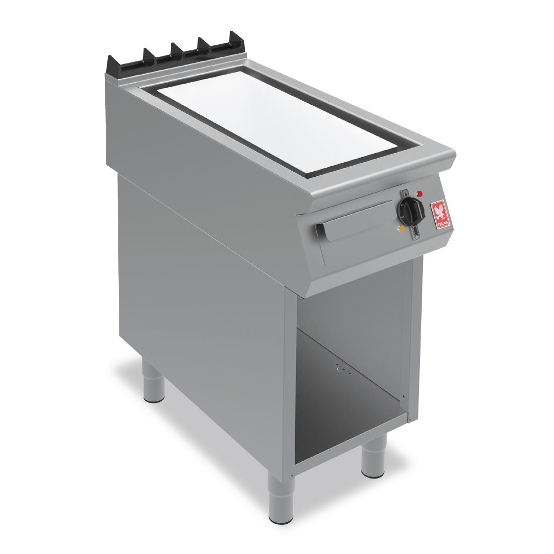 If space is limited, having powerful, versatile equipment which can cope with the demands of your kitchen is vital. The E9541CR Falcon F900 Electric Chromed Steel Griddle fits this bill perfectly, offering a sizable cooking area of 260x640mm, whilst only taking 400mm width of kitchen space. The superb quality chromed griddle is an exceptional cooking surface, as it doesn’t just look good – it emits much less heat and is far easier to clean in comparison to cast iron or ribbed griddles. The powerful 4.4kW element ensures heat up is fast, meaning you can quickly cook steaks, bacon, eggs and pancakes to perfection. Supplied on a sturdy fixed stand which also doubles as handy extra storage capacity.All Falcon F900 freestanding appliances benefit from advanced DLS (Dynamic Link System) technology, allowing the units to be seamlessly linked with other F900 products, leaving no gaps between stations – the perfect opportunity to create the ideal cook line for your kitchen.