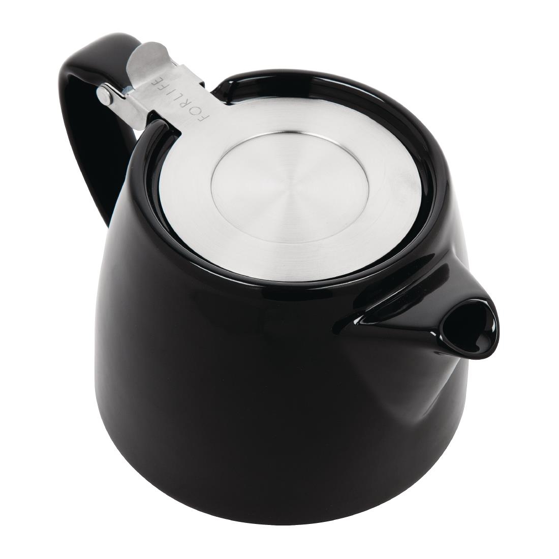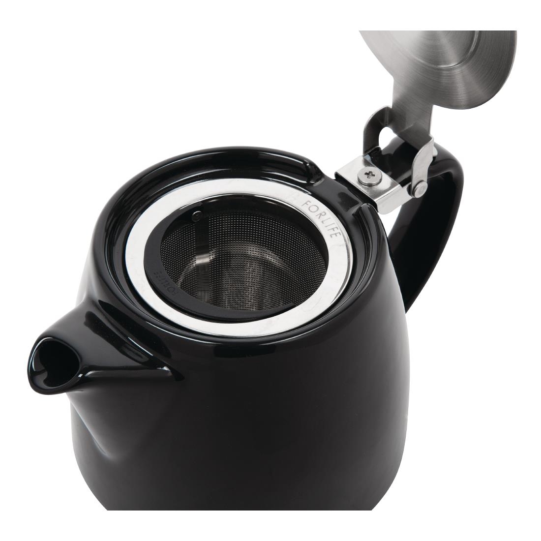 Offering exquisite style and outstanding practicality, this 510ml Forlife black stump teapot is a must-have for any tea room or café. Constructed from premium, lead-free glazed porcelain and featuring an elegant black finish, this teapot is exceptionally attractive and incredibly robust, enhancing your table décor while also ensuring a long-lasting life. With a stainless steel filter included, the teapot enables you to easily infuse loose tea leaves as well as tea bags, giving you greater choice over how you brew your delicious hot beverages. A stackable design and space-saving spout also make this teapot remarkably compact and space-efficient, freeing up more room in your storage areas.