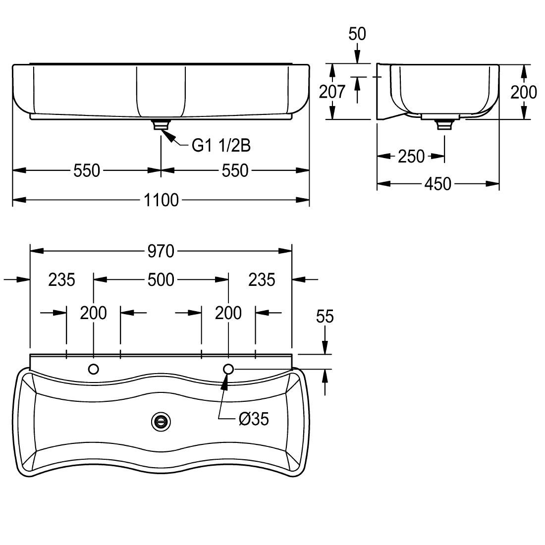 Dimensions 207(H) x 1100(W) x 450(D)mm