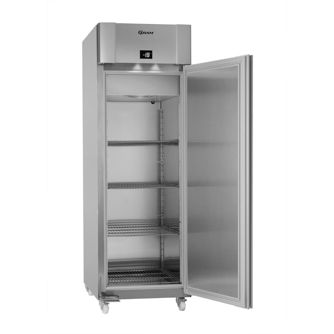 Keeping meats at precise temperatures is vital for food hygiene and the Gram Eco Plus M 70 RCG C1 4N Meat Fridge in Vario Silver colour does just that. The Eco Plus is specifically designed to reduce the cost and the environmental impact of keeping food cold, whilst not compromising on refrigeration performance. Inside, the Eco Plus can accommodate two full size (1/1) gastronorm pans per level – one behind the other – making the meat fridge ideal for large scale meat chilling in steak houses, takeaways, restaurants and more. For added hygiene and convenience, the fridge includes a hands-free pedal door opening mechanism.