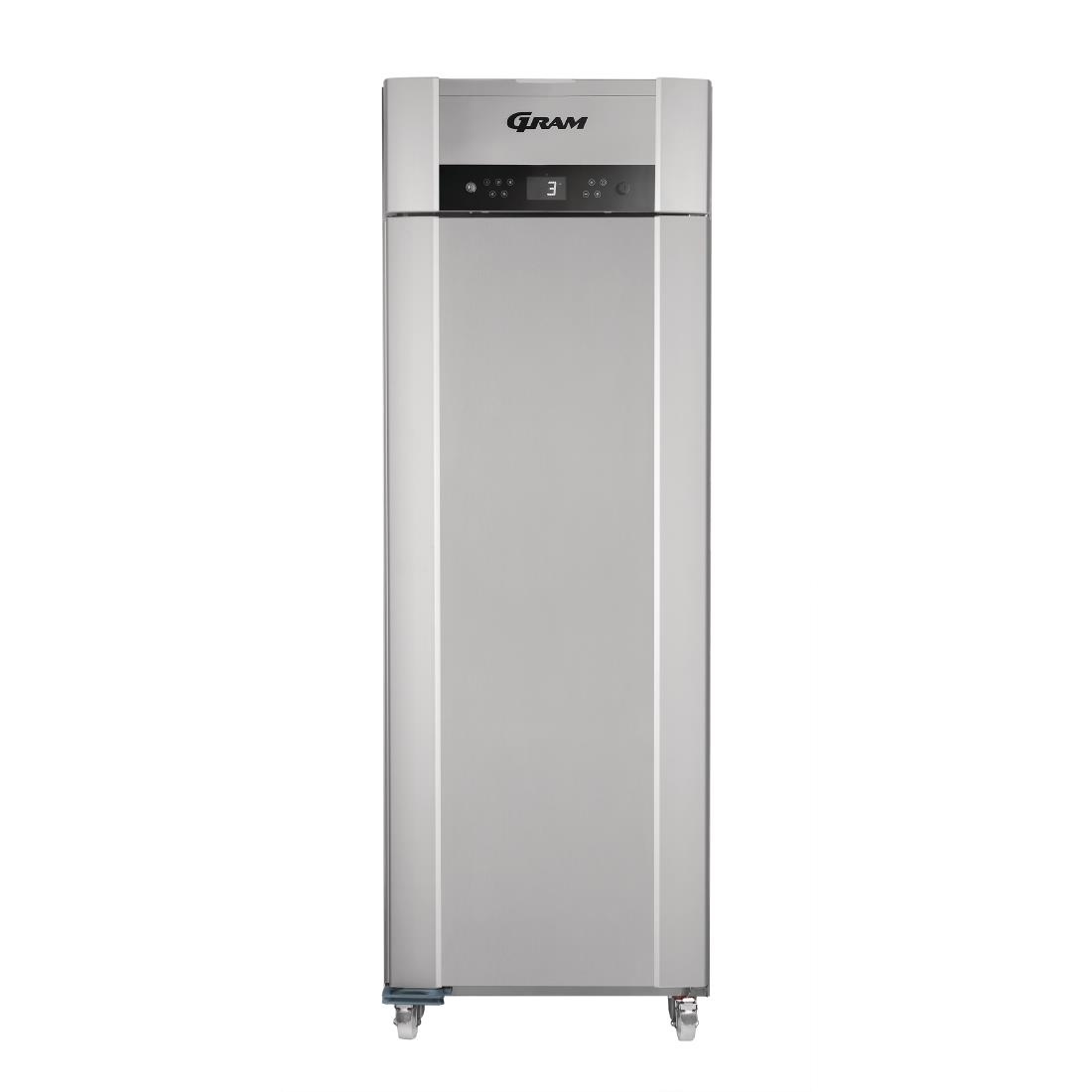 With innovative technology and ground-breaking design and design, the Gram Superior Plus stainless steel upright fridge in Vario Silver is one of the most energy efficient and advanced commercial fridges available today -using only 310 kWh/year. Able to accommodate double sized (2/1) gastronorm pans, the fridge is large and powerful enough for all commercial applications. Commercial design is throughout this machine – from the splash protection on the control panel, to the door pedal opening mechanism. Incredibly efficient, easy to use and clean.
