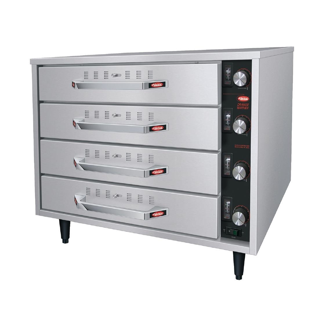 - Four heavy-duty drawers easily slide on Hatco-exclusive nylon rollers