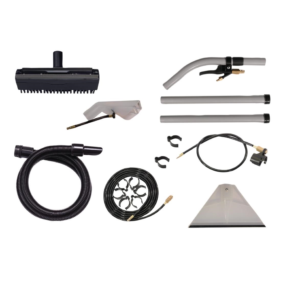 Supplied with full set of accessories including full wash kit, carpet and upholstery cleaning tools, and dual scrub floor tool