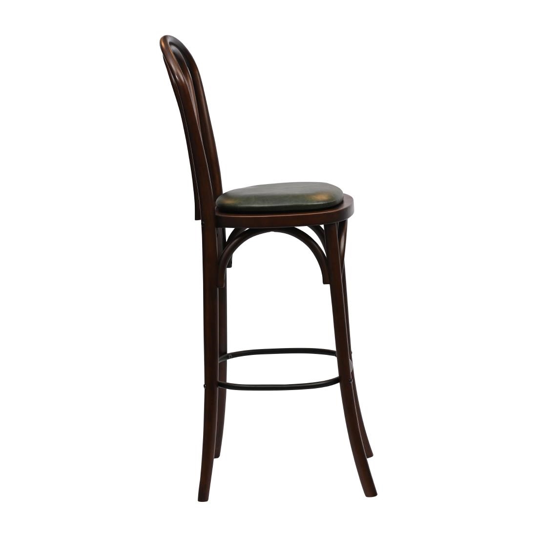 Enhance the charm of any venue with this elegant hoop back bar chair. Its French-inspired design combines visual appeal with comfort, making it a standout seating option. The dark walnut finish adds a warm, sophisticated touch, while the bison cedar seat provides a plush and inviting surface for your customers.