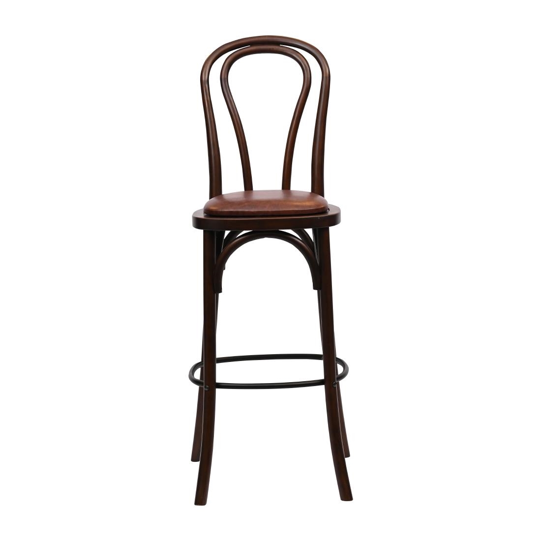 Enhance the charm of any venue with this elegant hoop back bar chair. Its French-inspired design combines visual appeal with comfort, making it a standout seating option. The dark walnut finish adds a warm, sophisticated touch, while the bison espresso seat provides a plush and inviting surface for your customers.