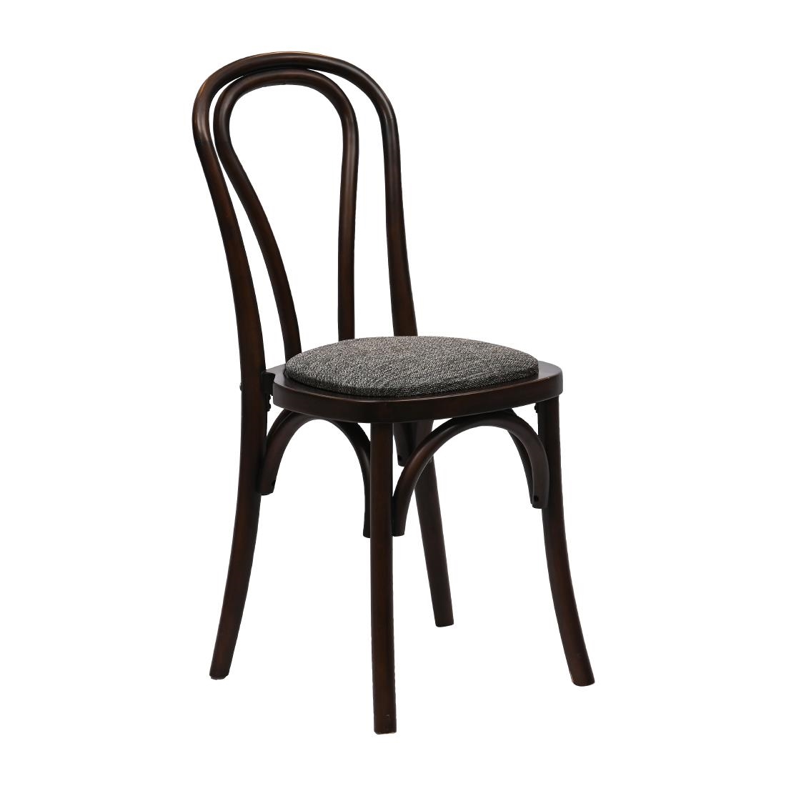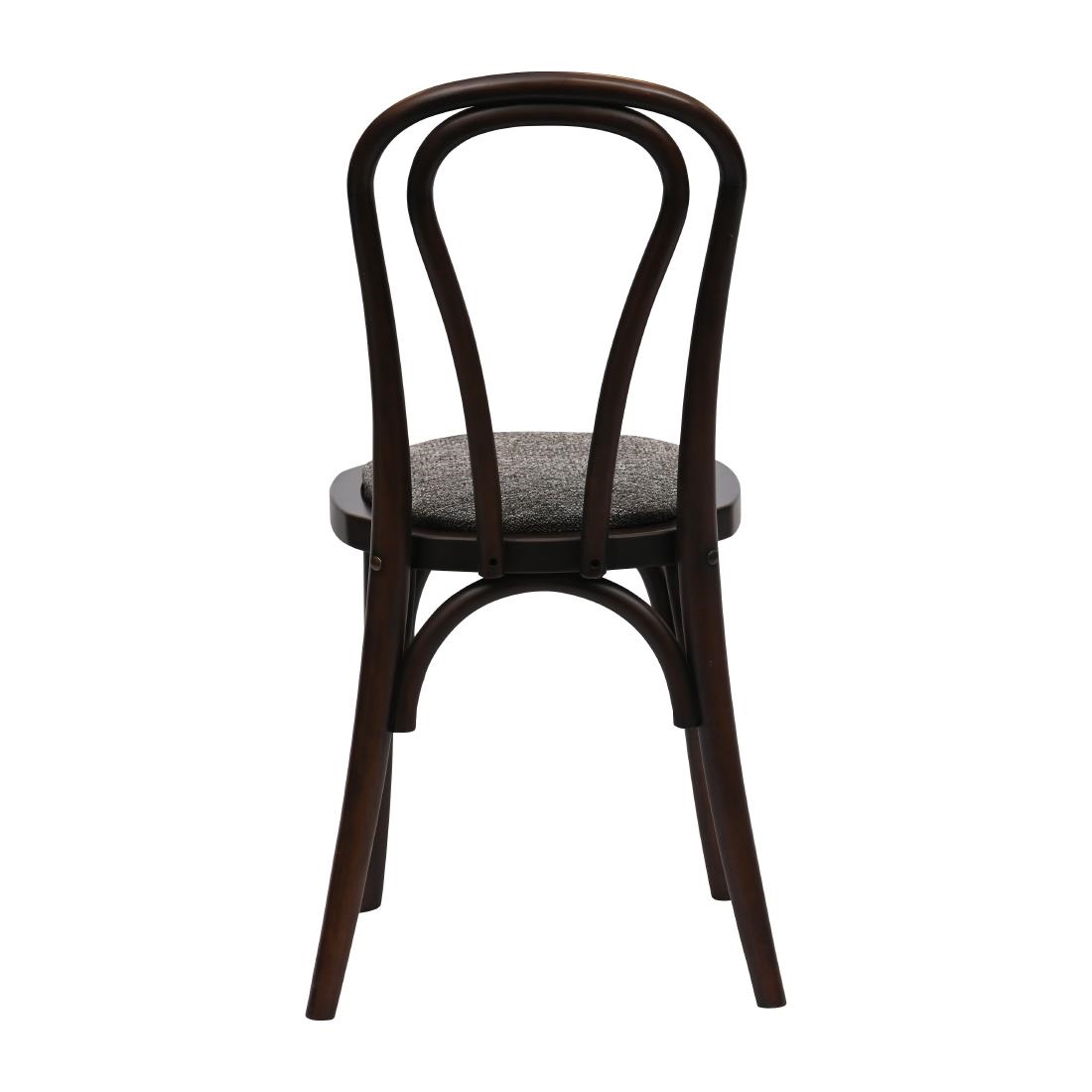 Enhance the charm of any venue with this elegant hoop back dining chair. Its French-inspired design combines visual appeal with comfort, making it a standout seating option. The dark walnut finish adds a warm, sophisticated touch, while the Shetland smoke seat provides a plush and inviting surface for your guests.