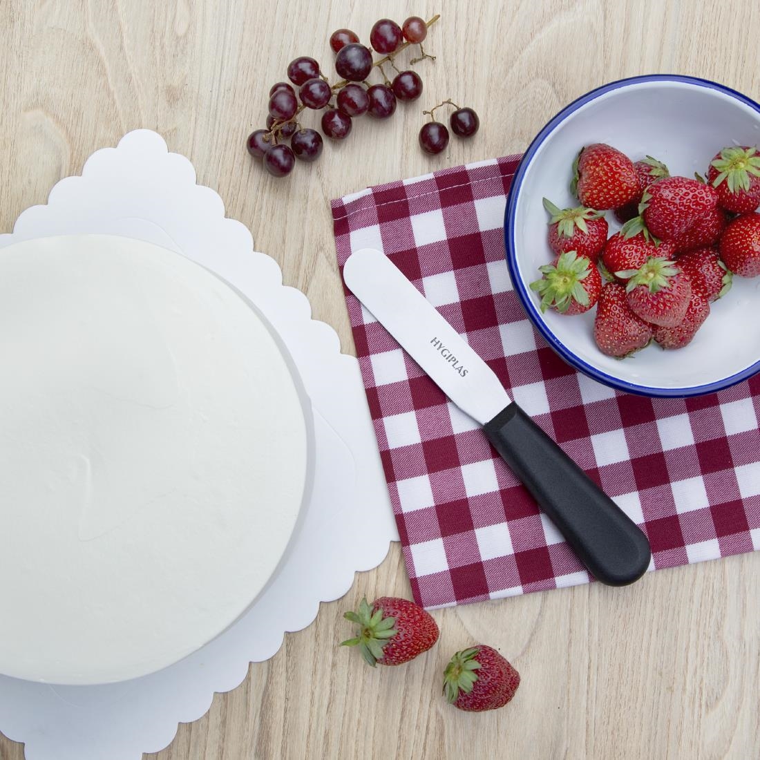 With a thin, flexible stainless steel blade and rounded tip, this palette knife from Hygiplas is ideal for spreading icing evenly over cakes and producing a smooth finish on the top and sides. Also known as an icing spatula, this palette knife is a truly essential baking utensil perfect for spreading sandwich fillings, , lifting baked goods from baking trays and trimming icing on the sides of cakes.