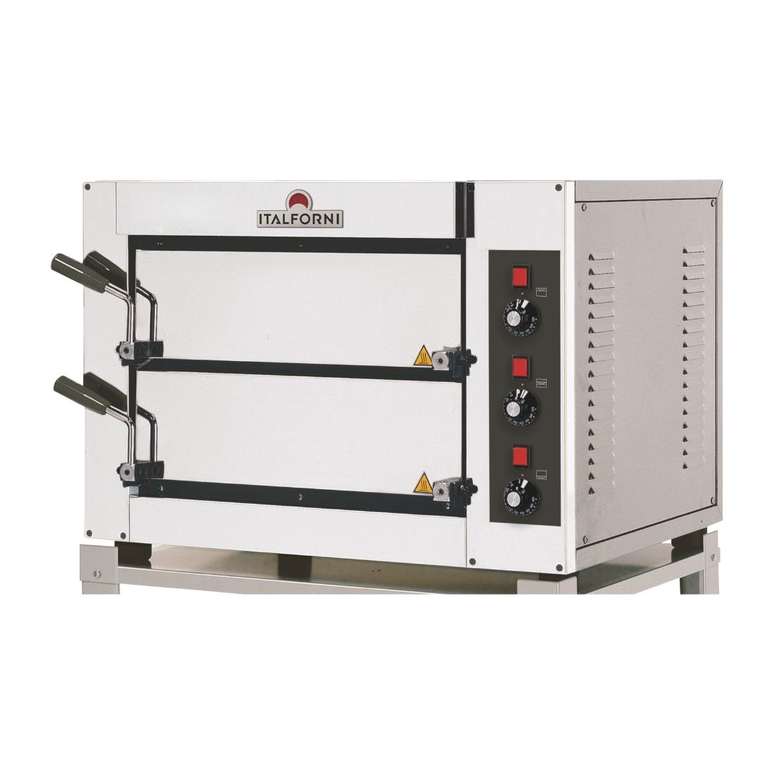 - Twin deck oven with refractory brick oven base will take 4 x 250mm pizza’s per deck