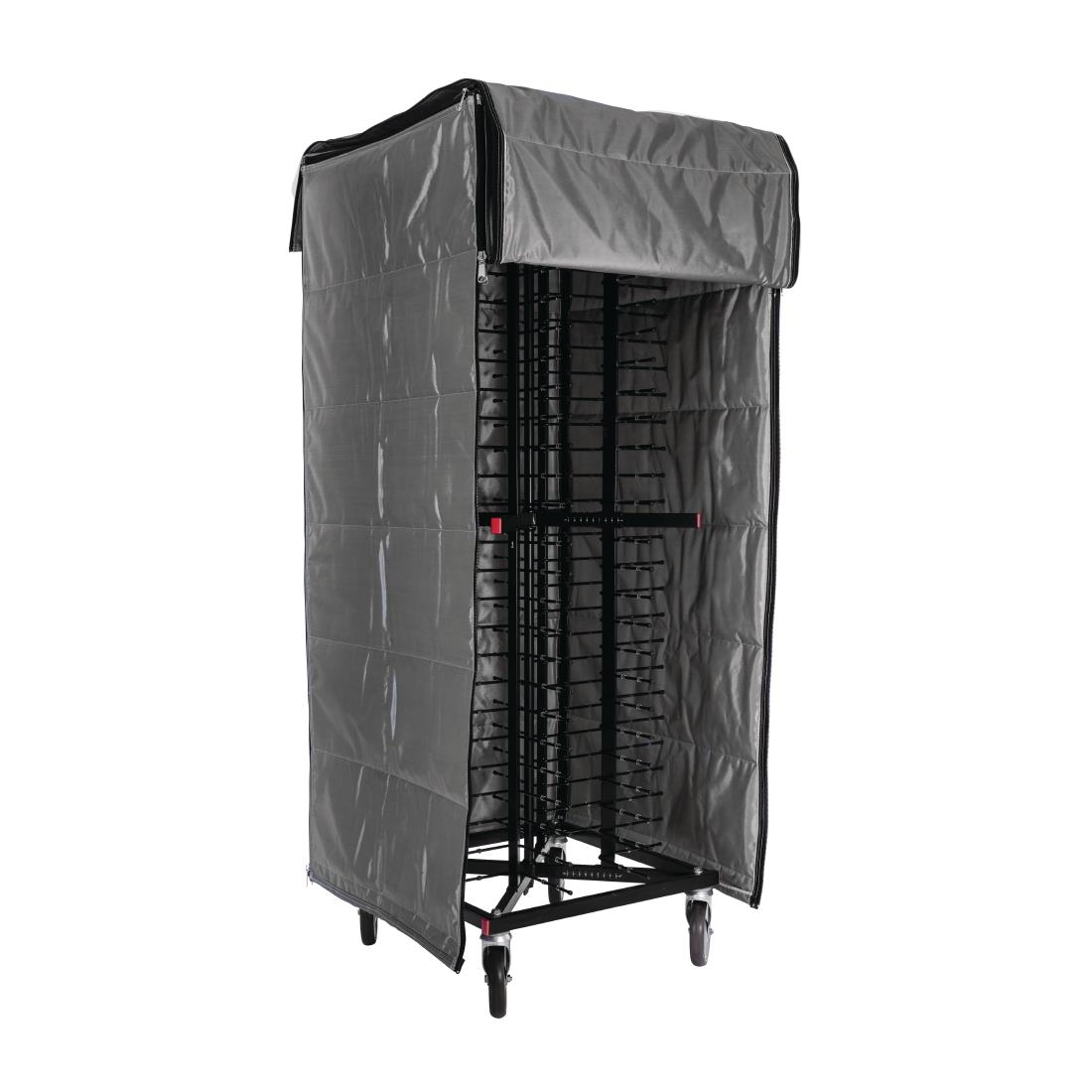 Designed for use with the Jackstack plate storage, this Thermocover is ideal for keeping food at the perfect temperature, secure and hygienically sealed featuring a cover is made from industrial high tenacity PES fabric, with a polyester fibre filling. Corner zips grant easy access to trolleys, and saves time when clearing away whether it’s for canteen, school or restaurant catering. Store freshly prepared food for longer, in cold storage or on its way to a buffet with this insulated cover. The thermocover preserves 72 to 14 plates of hot or cold food comfortable, and comes complete with document holder for convenience.