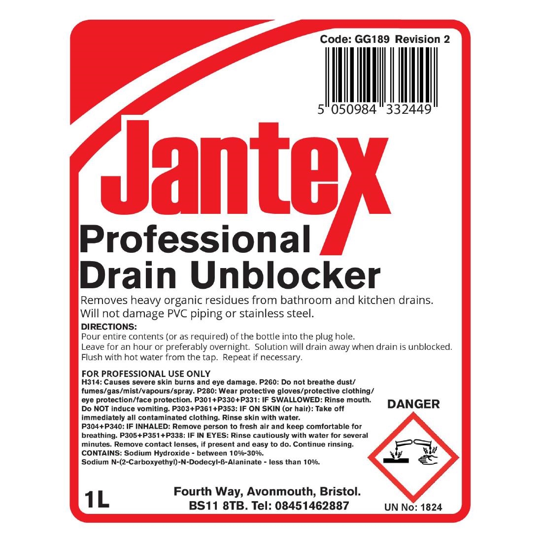 Blocked drains can cause serious issues to your business and your pocket; with most plumbing bills being extremely costly. The heavy duty drain unblocker from Jantex dissolves oil and fatty deposits within drains and grease traps, and powers through standing water to make drains and pipes clean and healthy again; saving you money.This powerful formula comes ready to use, and is perfectly suited to hotels, restaurants and cafés to help keep drains clear and efficient, with lasting results to ensure that your pipe work is hygienic and free of blockages. This drain unblocker will not damage PVC piping or stainless steel.