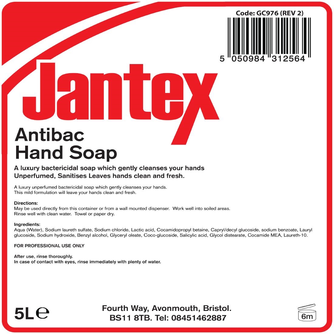 Want to maintain excellent hygiene standards? All without breaking the bank? Then this 5Ltr Jantex antibacterial hand soap is perfect for you! This soap contains a powerful sanitising agent that’ll eliminate up to 99.9% of bacteria in just five minutes – providing quick protection against a wide range of germs.And as it’s fragrance-free, the hand soap can be used by your staff before handling food, without tainting ingredients.Plus, the large 5Ltr size means each bottle will last you far longer too – stretching your money that-bit further whilst also making sure you’ve always got antibacterial soap on hand when you need it most!