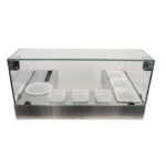 Ideal for fast, hygienic and stylish production of crepes and pancakes, the JM Posner crepe serving station provides easy, convenient access to the ingredients and crepe maker. As everything is in one place, service is more efficient and value can be added to crepes as the ingredients are more visible to customers. Fitted with a hygienic sneeze screen as standard, the crepe prep station is also supplied with three large and three medium ceramic ingredient containers, as well as a round ceramic crepe mix container, spatula and spreader. With a suitably sized chopping board, this crepe serving station could also be used as a sandwich or panini prep station. *Please note: JM Posner crepe maker sold separately.