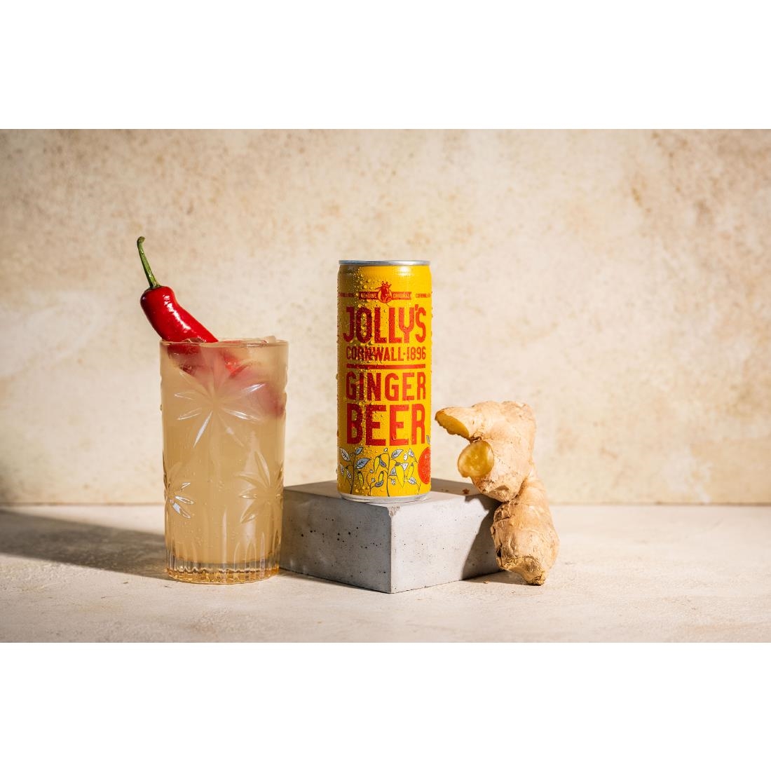 Jolly’s Cornish drinks are mixed, developed and created in Jolly’s HQ in Cornwall with the finest ingredients and Cornish spring water. Infused with Jamaican yellow chillies grown in Cornwall, this Jolly’s Cornish ginger beer is super refreshing.