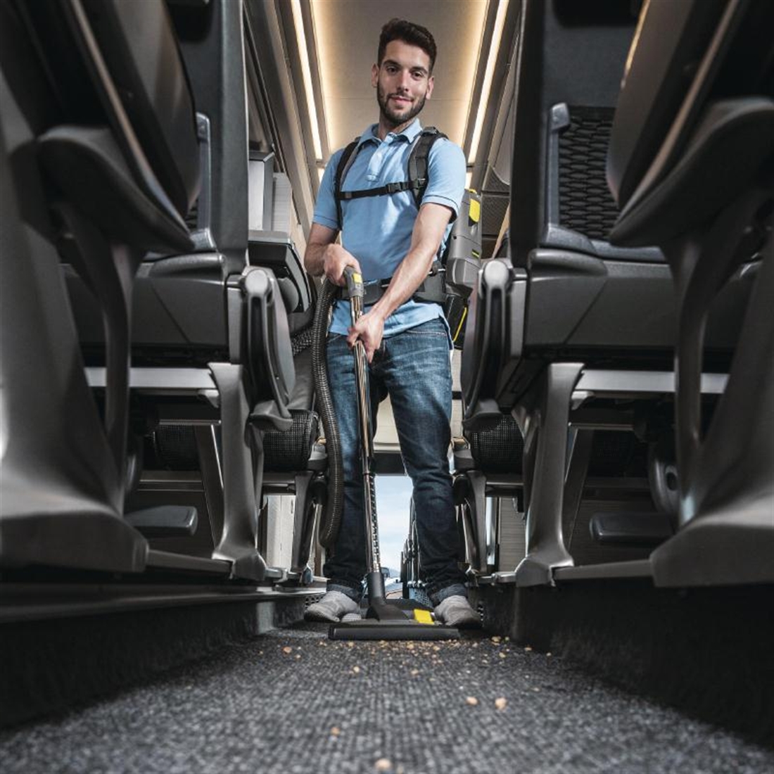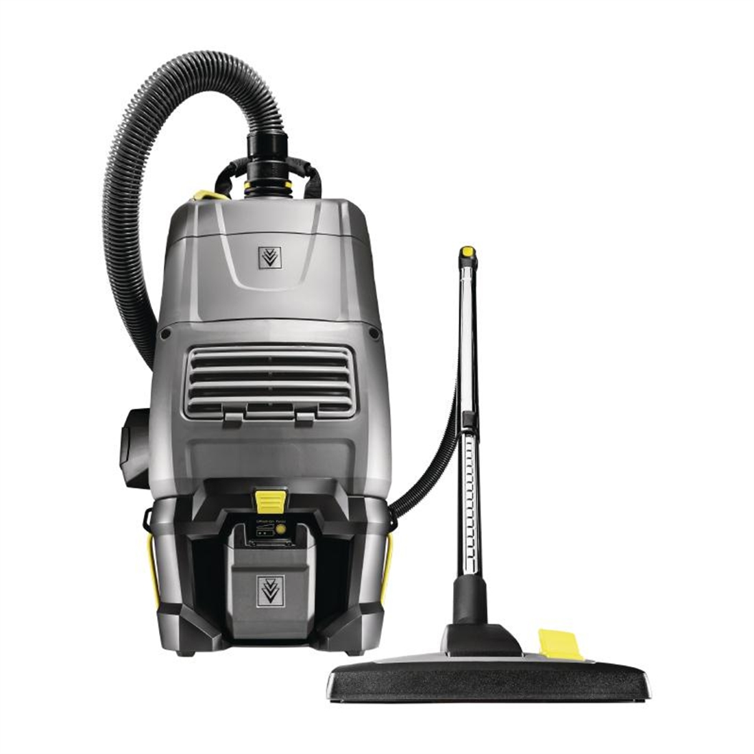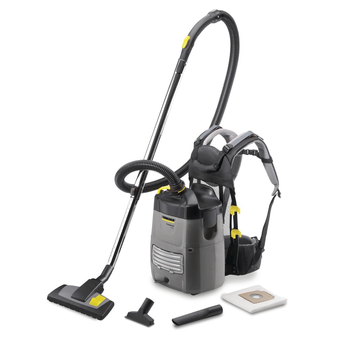 The Karcher back pack vacuum cleaner is a versatile dry vacuum, ideal for use in stairways, high traffic or hard to reach areas. The back pack design allows the vacuum to be carried around from room to room in hotels, making it perfect for cleaning room quickly without having to pull around a wheeled machine. To provide maximum comfort, the straps have a patented ventilation system, helping to keep users cool whilst they clean.