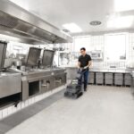 Designed for heavy duty cleaning, the Karcher BR 40/10 scrubber dryer delivers impressive performance and functionality. Using two powerful counter-rotating brushes, two rubber squeegees and a vacuum system, floors are left expertly clean, quick-to-dry and safe. Even heavily soiled floors are no match for the Karcher.The BR 40/10 scrubber dryer is fast and simple to use, too. With its ergonomic handle and low reach design, users can operate the unit for extended periods, whilst accessing under furniture like hospital beds or tables. If required, the top tank can be removed during use to allow access into lower height areas.