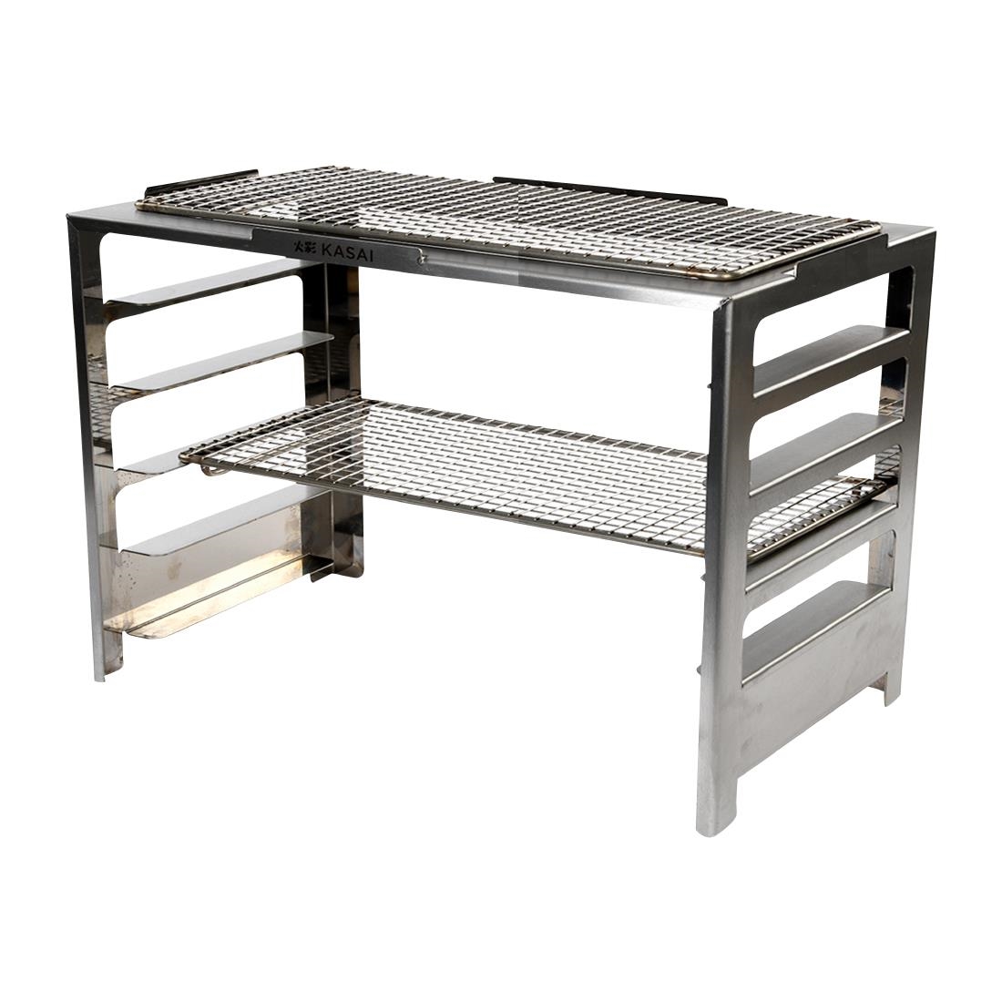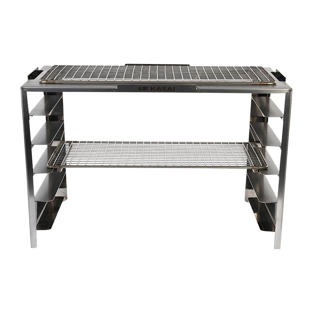 The Robata rack is a game changer for the charcoal connoisseur. It takes the Kasai hibachi grill to a new level, allowing it to go from being used for a small number of ingredients at a time, to one you can now focus the full menu around. The Robata rack easily fits onto your existing Kasai Grill with no additional fittings required. Other models with skewers, planchas or searing grates are also available.