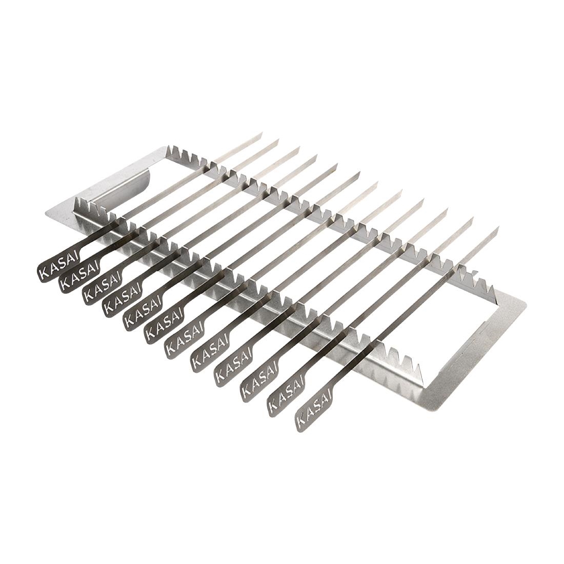 This British made Kasai Konro skewer rack is specifically designed to complement the Kasai Extra Long konro grill. With twelve skewers, all with stainless steel handles, each skewer is ideal for grilling everything from spiced lamb to vibrant veggies and squeaky halloumi. There’s no need to lift skewers from the grill to turn, simply insert the food onto the skewer, slot into the frame and turn 360 degrees to ensure even cooking throughout.