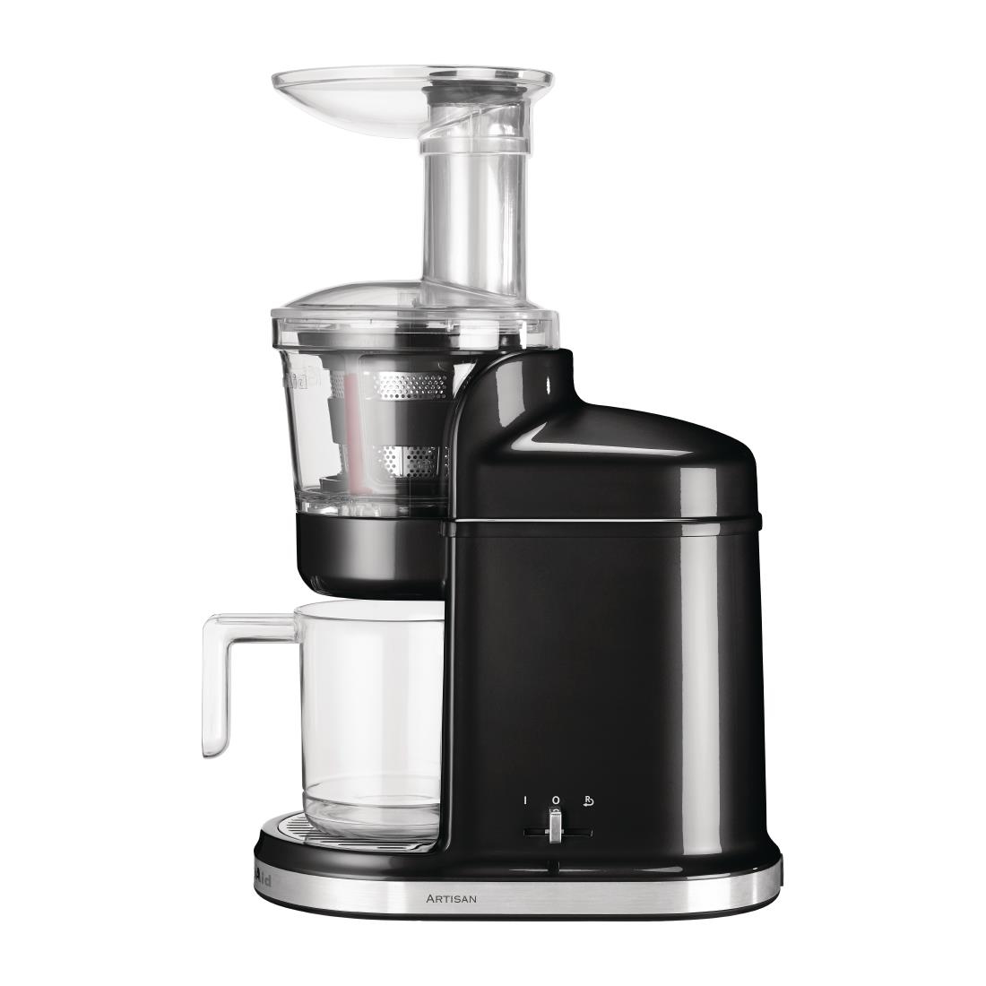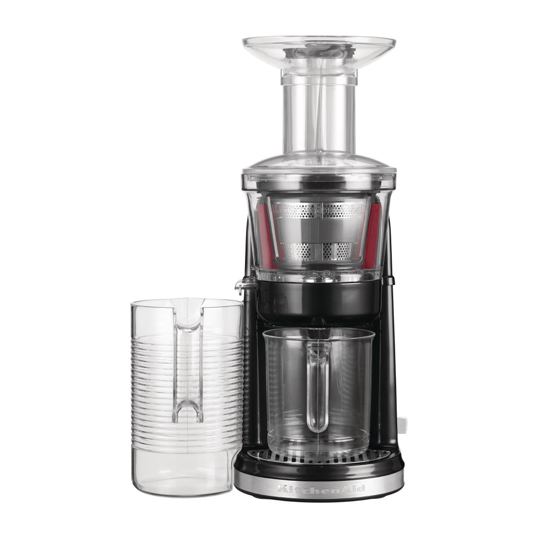 With its innovative two-stage blade and auger system, the KitchenAid 5KVJ0111 slow juicer in Onyx Black is a highly effective home solution for extracting the maximum amount of juice from all sorts of fruit and vegetables. Supplied as standard with three pulp screens and a foam filter, you can get great juicing results – whether that’s a smooth vegetable juice or a thick fruit purée. The premium die-cast metal construction also makes the KitchenAid highly sturdy and easy to clean. Please note: no commercial warranty.