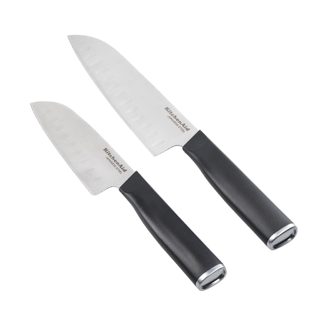The KitchenAid Classic 2 piece santoku knife set is a must have for everyday meal prep. The ridges on the blades are specially designed to prevent foods from sticking while you slice, making them ideal for chopping and dicing vegetables.
