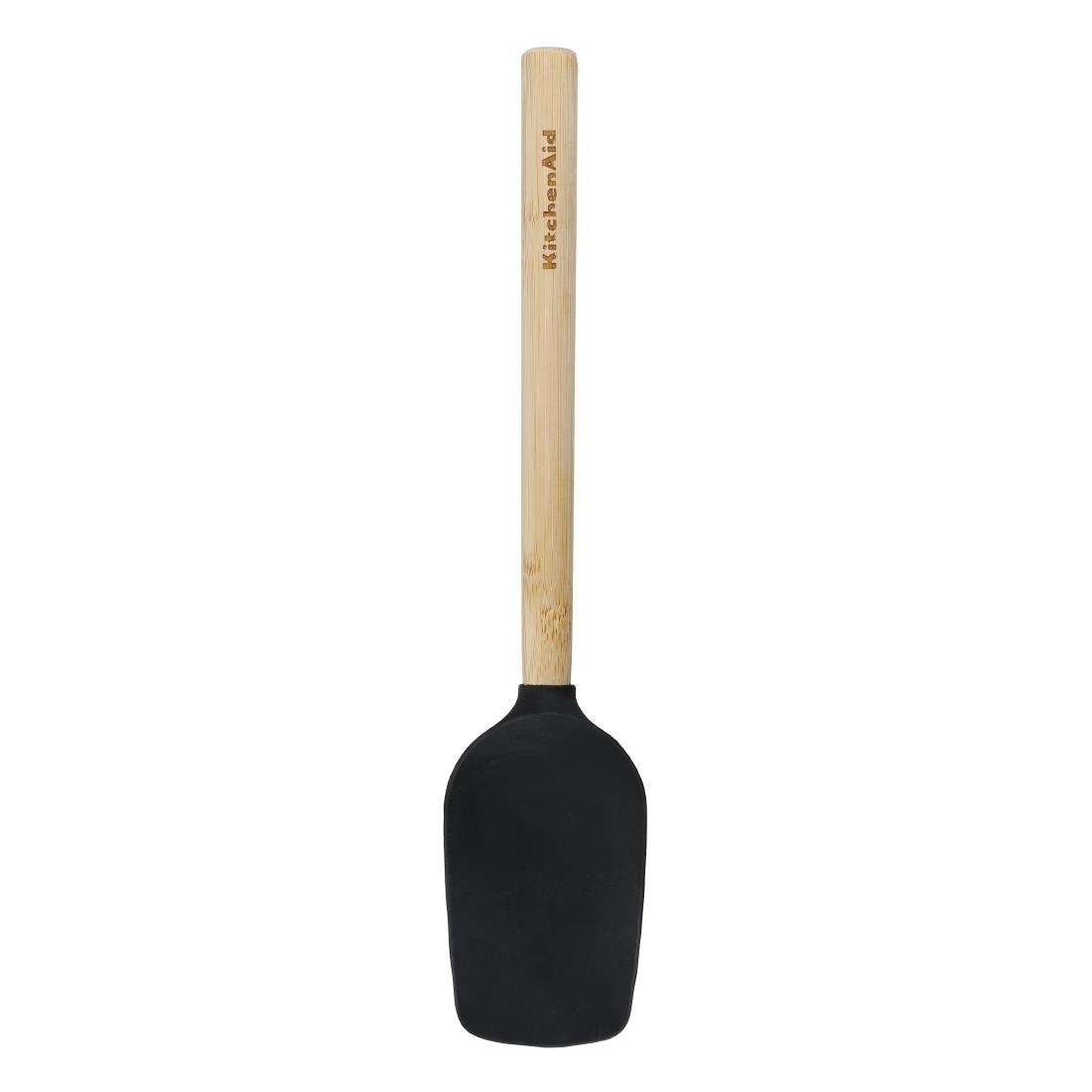 This KitchenAid bamboo spoon/spatula is ideal for effectively scraping foods out of tubs and bowls, plus turning and lifting food. The smart design of the flexible, silicone head features curved sides for scraping even hard to reach areas.