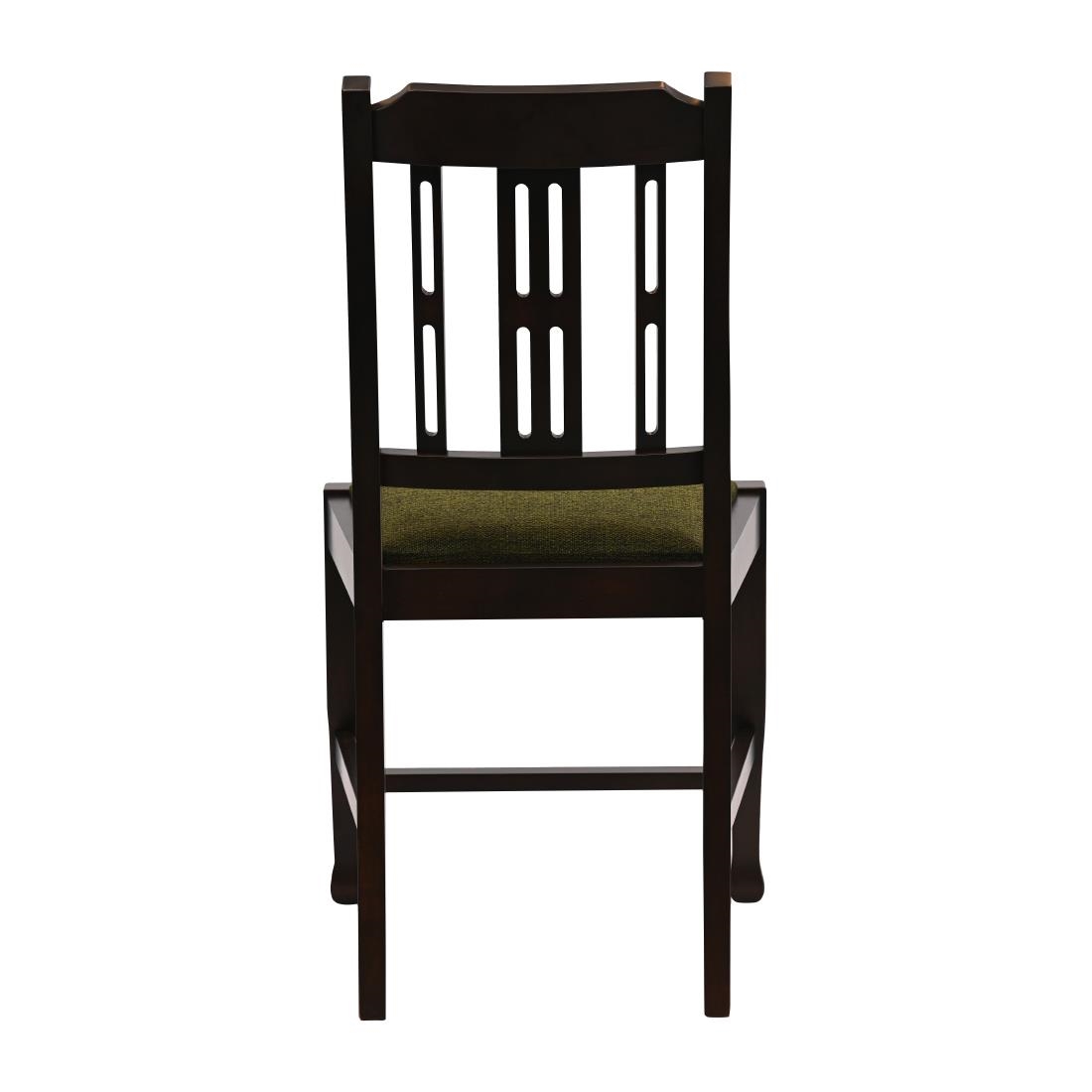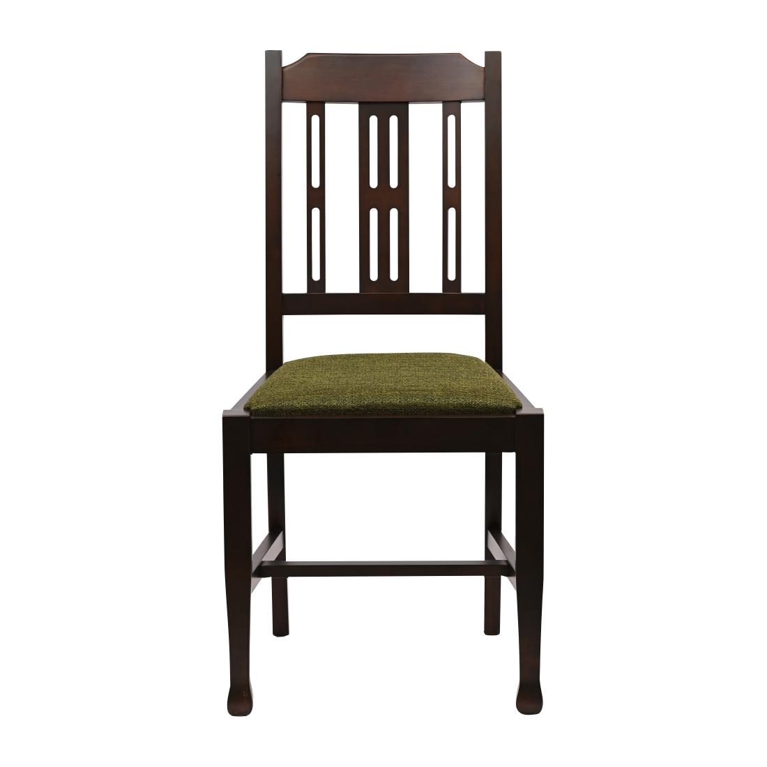 Made from rubberwood in a dark walnut finish, these contract-quality dining chairs come fitted with seat pads upholstered in a soft Shetland Forest green textured fabric. Each chair conforms to CRIB 5 FR standards, ensuring suitability for hospitality use.