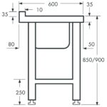 Size: 900(H) x 1000(W) x 600(D)mm. 35mm upstand at read. L881LH