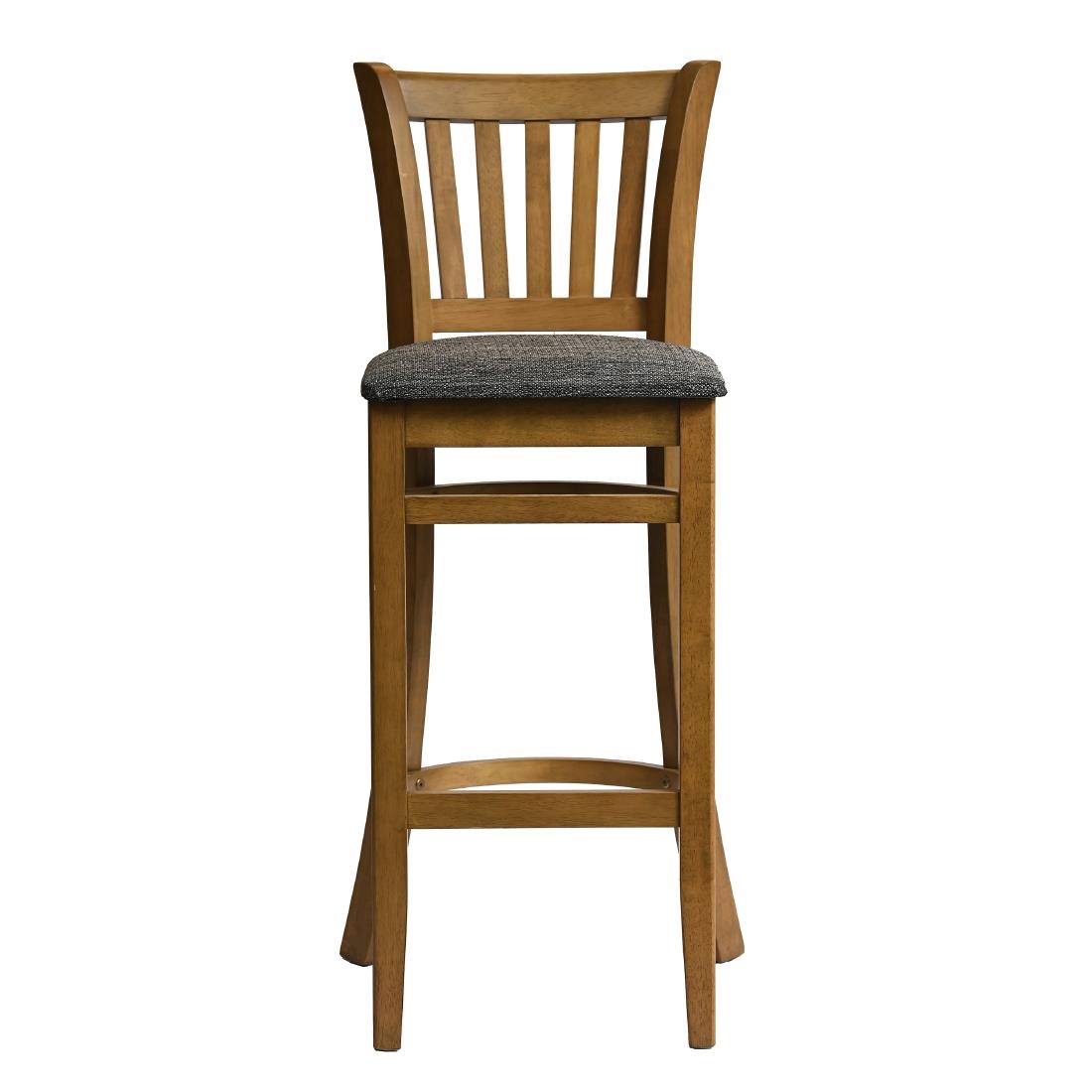 The Manhattan bar chair is the perfect height to pair with a poseur table, drinking shelf or right there in front of the pumps. Made to contract furniture standard, its solid wood construction ensures sturdiness and longevity, allowing the chair to withstand the demands of commercial environments. Its distinctive curved back with vertical slats offers a touch of traditional flair while providing excellent lumbar support. A shetland smoke fabric covers the padded seat, adding a layer of both comfort and sophistication.