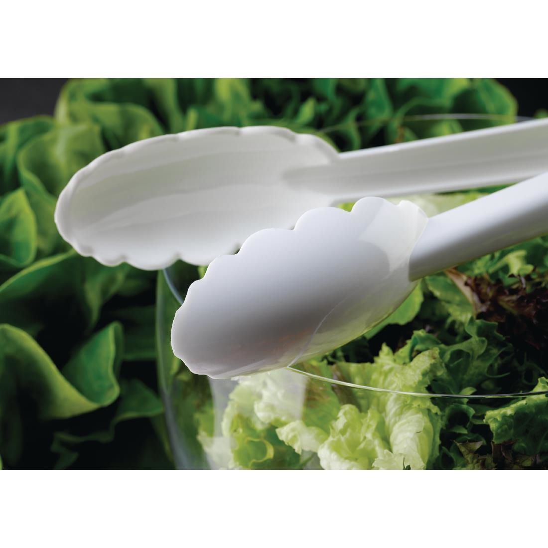 Prevent cross contamination in your kitchen with Matfer Bourgeat exoglass tongs, colour-coded white for dairy awareness. The tongs are highly durable thanks to an exoglass composite material, meaning they last for years and won’t need to be replaced. They’re also designed for use with non-stick pans as not to scratch the surface. This makes turning meats and vegetables far simpler, and with the added benefits of the tongs being easy to clean and capable of resisting temperatures up to 220°C.