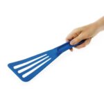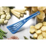 Strong, hygienic and easy to clean this blue exoglass perforated spatula from Matfer Bourgeat can also resist temperatures up to 220 degrees Celcius, making it suitable for many cooking and preparation tasks. Made from rigid exoglass, this utensil is highly robust and versatile, making it ideal for use in a commercial kitchen setting. This spatula is also colour coded blue for use with raw fish, helping you to avoid the risks of cross contamination.