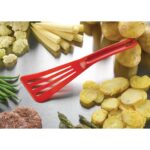 Strong, hygienic and easy to clean this red exoglass perforated spatula from Matfer Bourgeat can also resist temperatures up to 220 degrees Celcius, making it suitable for many cooking and preparation tasks. Made from rigid exoglass, this utensil is highly robust and versatile, making it ideal for use in a commercial kitchen setting. This spatula is also colour coded red for use with raw meat, helping you to avoid the risks of cross contamination.