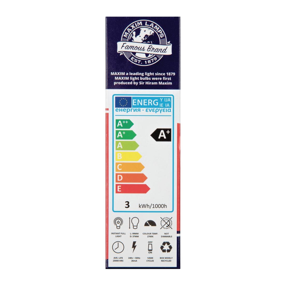 For a warm white appearance, and long lifespan these LED bulbs from Status are ideal. With a colour temperature of 2700K the light from these bulbs is comparable to that of incandescent bulbs, and is warm, relaxing and ideal for mood lighting in any environment. The candle lamps boast an average rated lifespan of 25,000 hours keeping bulb replacements down to a minimum. Bayonet cap fitting.