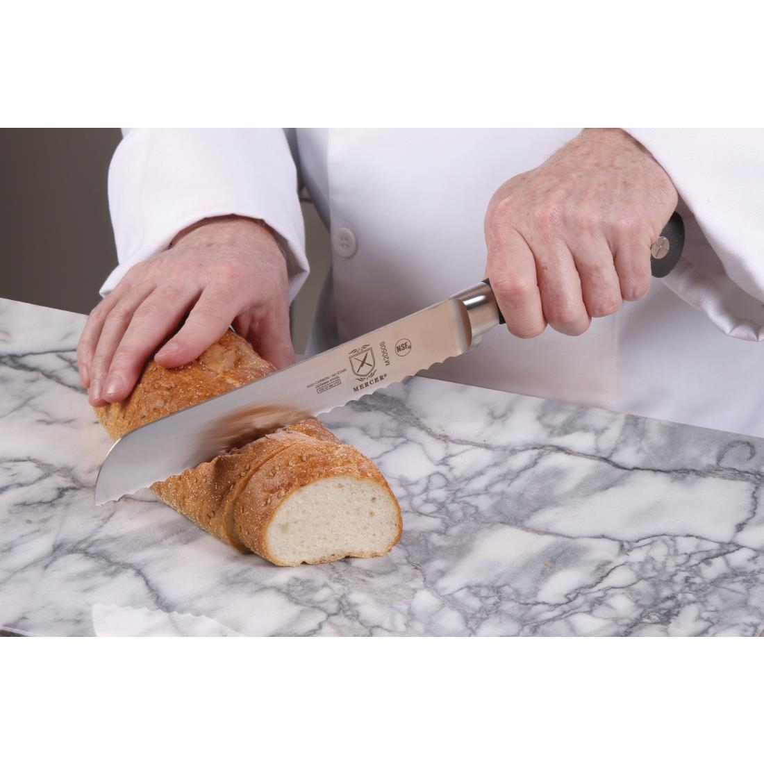 Part of the Mercer Culinary’s Genesis collection, this 8″ bread knife features an ergonomically designed handle comprised of Santoprene, a high-performance material that feels soft and is comfortable to hold. The Santoprene handle will not break down when exposed to kitchen oils and is able to withstand hot and cold temperatures. Plus, it offers a nonslip grip for safety with extended use.
