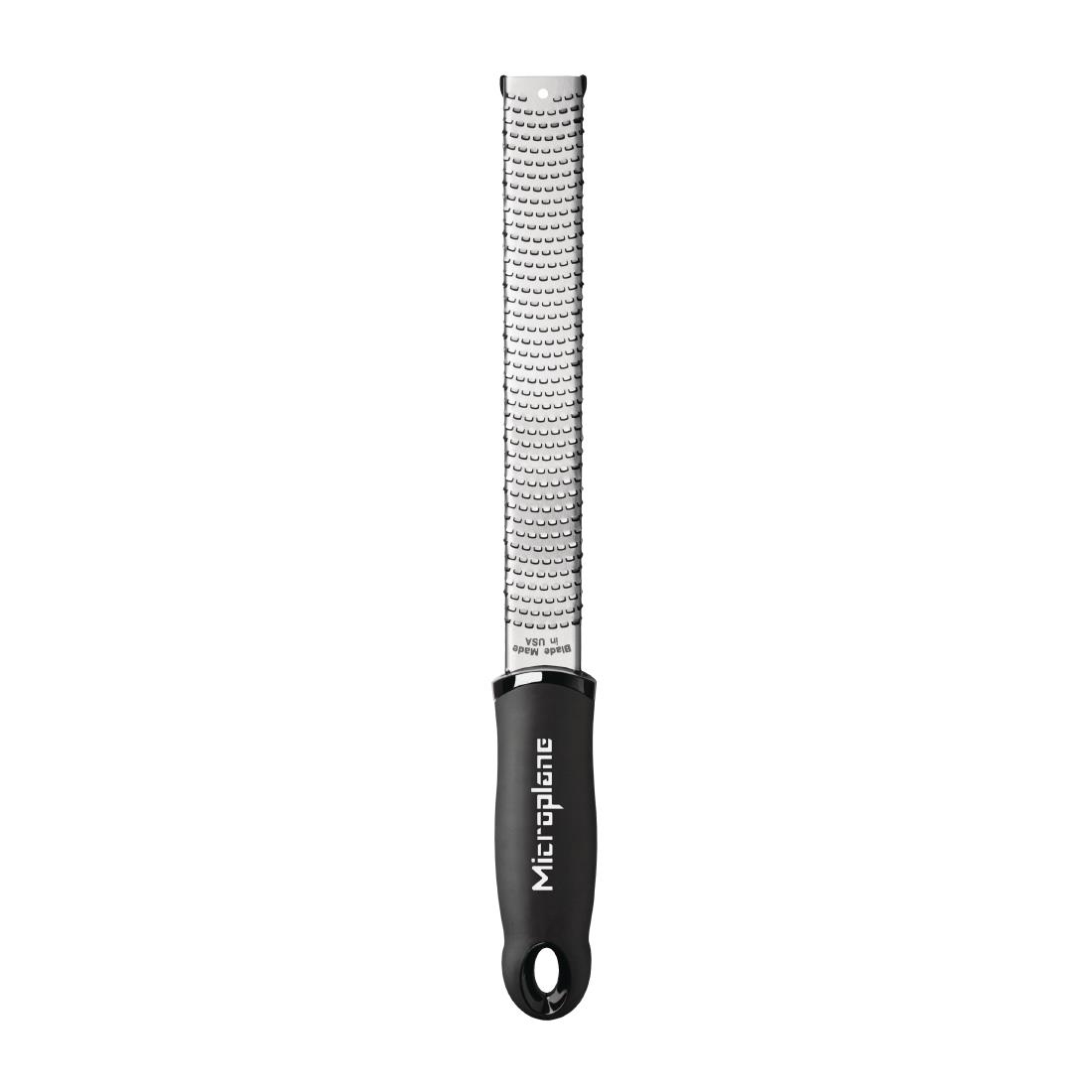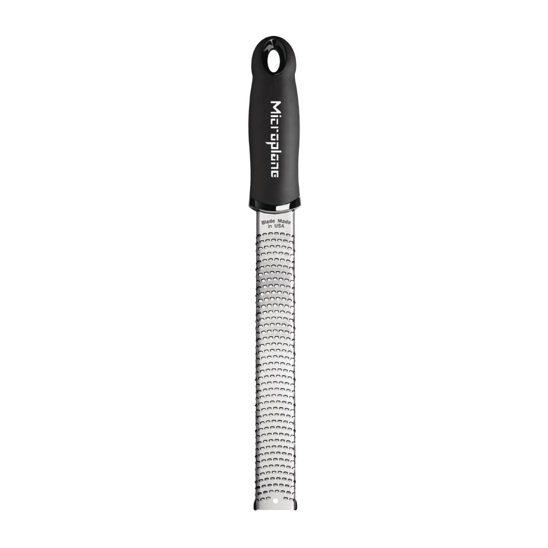 Want to ensure your food stands out from the crowd? Using this professional grater from Microplane is guaranteed to add a new dimension to your dishes. A premium stainless steel blade ensures ingredients are grated or zested without ripping, tearing, shredding or crushing them – this ensures the finest aromas are properly released, enhancing the flavours and taste.The black handle is soft to touch and remains comfortable in the hand, even during the busiest of food prep shifts. The blade requires no pressure on the food, taking all the effort out of grating. It’s also designed to prevent ingredients from sticking or blocking, so cleaning it is a breeze too.