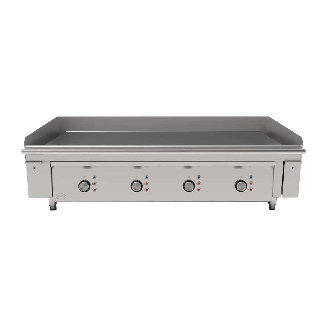 Designed for high-demand commercial kitchens, the Mirror M1300E heavy duty electric griddle is a reliable choice for fast food outlets, mobile catering and front of house cooking. It features an expansive 1200x600mm cooking area on an 18mm thick, mirror-finish chrome plate. This surface provides excellent heat retention and distribution, ensuring consistent cooking results whilst also being easier to clean than standard steel plates.
