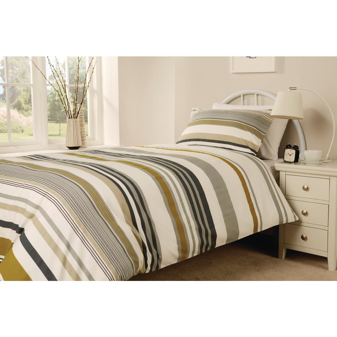 Mitre Essentials Madison Stripe Housewife Pillowcase Olive