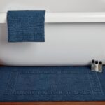 This navy Nova Colour Bath Mat provides the means for your hotel guest to avoid the discomfort of placing their feet on cold tile floors. The 100% cotton bath mat is a weighty 700gsm that acts as a highly soft and comforting landing pad when emerging from the shower. The mat is decorated with a classic Grecian key patterned design for beautiful aesthetics and visual appeal. The mat also fulfils the practical needs of being non-slip and robust enough to retain all of its qualities for a very long time in the face of frequent laundering.