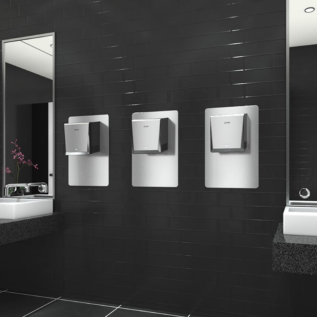 Designed for busy washrooms, the silver Mitsubishi Jet Towel Wave u02 smart hand dryer offers fast, efficient, and hygienic drying. Its heavy duty construction is suitable for high-traffic locations with over 300 uses per day, from restaurants and bars to airports and service stations. Using patented Wave Technology, the dryer optimises airflow to reduce noise whilst delivering a powerful 353mph air speed that dries hands in under 15 seconds. This combination of speed and quiet operation makes it highly versatile to position.