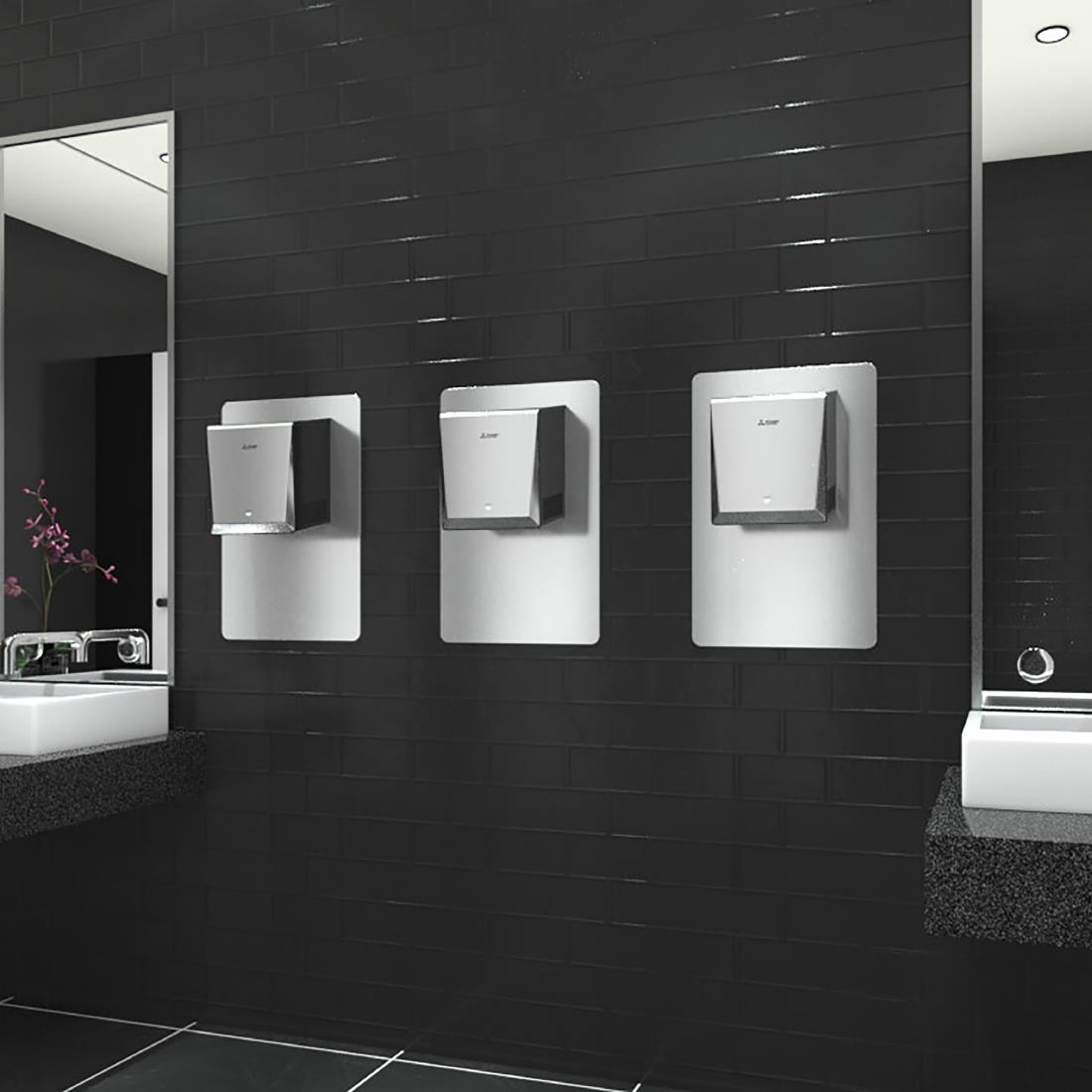 Designed for busy washrooms, the white Mitsubishi Jet Towel Wave u02 smart hand dryer offers fast, efficient, and hygienic drying. Its heavy duty construction is suitable for high-traffic locations with over 300 uses per day, from restaurants and bars to airports and service stations. Using patented Wave Technology, the dryer optimises airflow to reduce noise whilst delivering a powerful 353mph air speed that dries hands in under 15 seconds. This combination of speed and quiet operation makes it highly versatile to position.