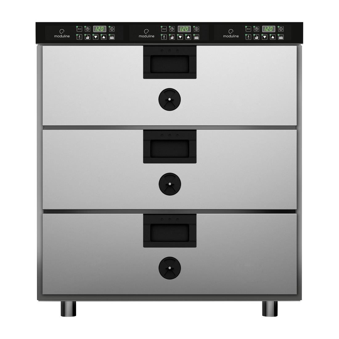 The Moduline CSD313E multi temp countertop 3 drawer cook & hold oven packs incredible professional performance and flexibility into a compact, versatile design – ideal for kitchens where space is at a premium. Its 2.1kW radiant heating system gently cooks dishes overnight or during service, reducing shrinkage whilst preserving moisture and tenderness – perfect for slow-cooked meats or baked goods.