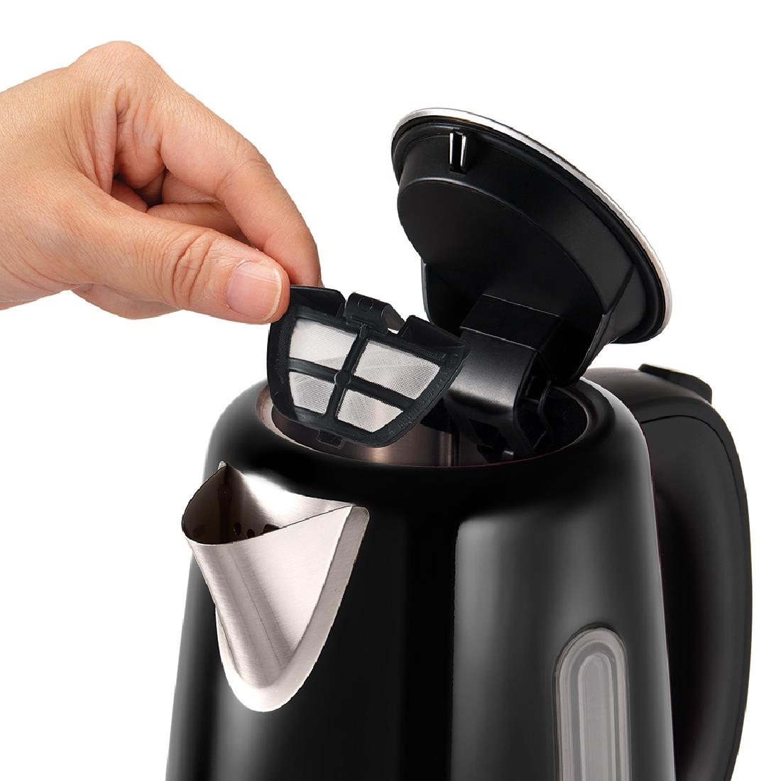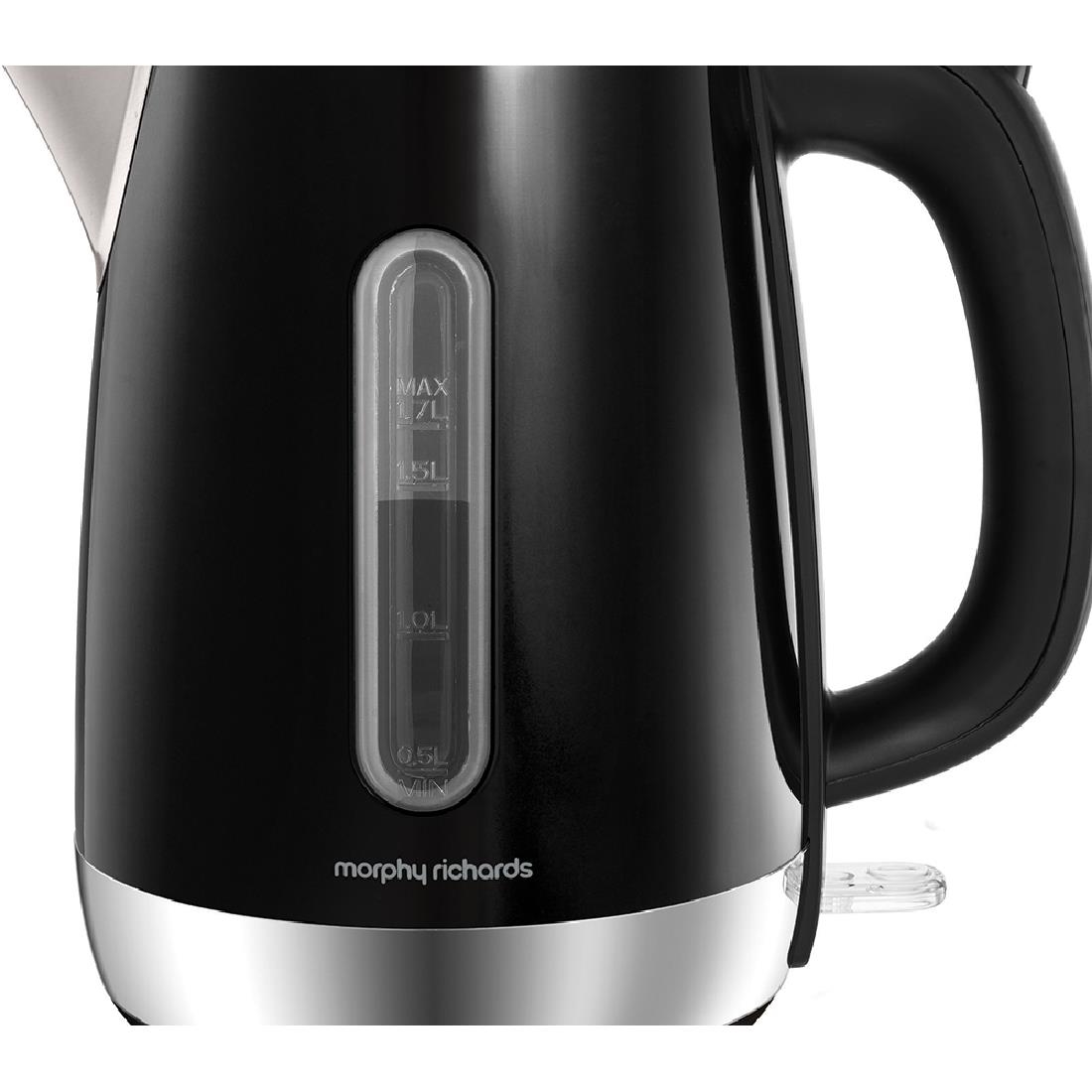 Stylish and sophisticated, the Morphy Richards Equip kettle is the perfect choice for the home kitchen. With its powerful 3kW element and impressive 1.7 litre capacity, the kettle is great for busy family breakfasts or when you’ve got guests.The Equip is designed to give you great tasting drinks every time. With a removable limescale filter and easy-clean element, it’s simple to keep the water clean and clear, perfect for any hot drink. And thanks to the attractive black colour, the Equip kettle looks great anywhere.