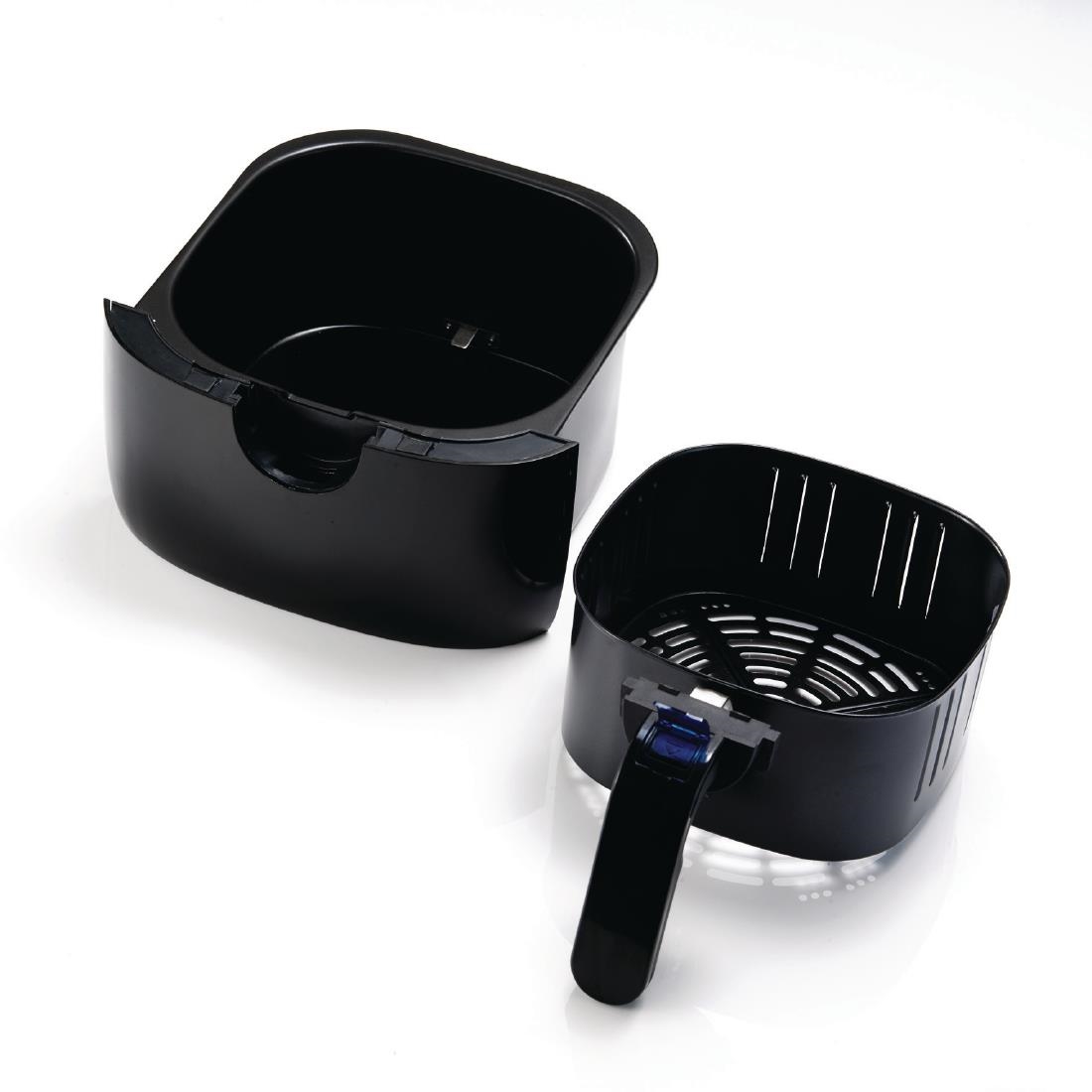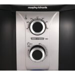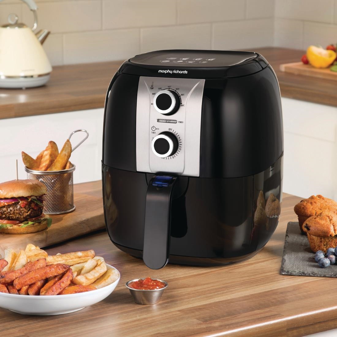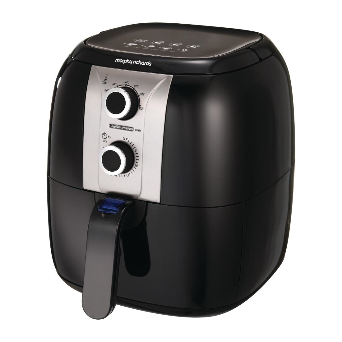 Reduce the amount of oil and fat used when cooking with the Morphy Richards Health Fryer. With its impressive three litre capacity and powerful rapid air technology, food is quickly and evenly cooked via convection heating, leaving deliciously crispy results every time.Simple manual controls couldn’t be easier – just set the time and temperature then close the pan. Cooking starts automatically and shuts off once the time has elapsed. The perforated base plate ensures chips, chicken and fish are cook though without any soggy spots – great for a quick family meal without messy oil pans or baking trays.Please note: home use only. No commercial warranty.