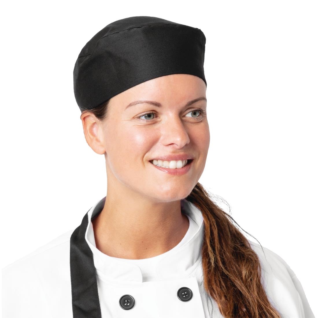 Great value pack of two skull caps with elasticated back from Nisbets Essentials. Offers an alternative to traditional chef hats. One size fits all.